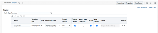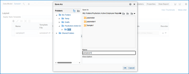 ‘samplerpt1’ as “TEMPLATE”, — report template name