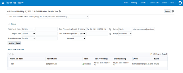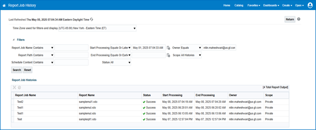 Step 14: Report Job History is showing the status “Success” and check the mail(Instead of Fig 26-Ref-Fig 33- having the Successful Status for Multiple Bursting)
