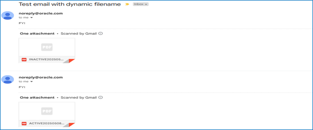 Step 15: Now, check the delivery on email address specified in the Bursting Options. The received email displays the subject line, attached PDF report, and message content as defined in the Bursting Query.(Instead of Fig 27-Ref-Fig 34- Showing the Multiple Bursting Report in the mail)