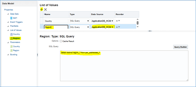 Step 6: Click on list of values –Click on plus (+) button –write the name –select Data Source.